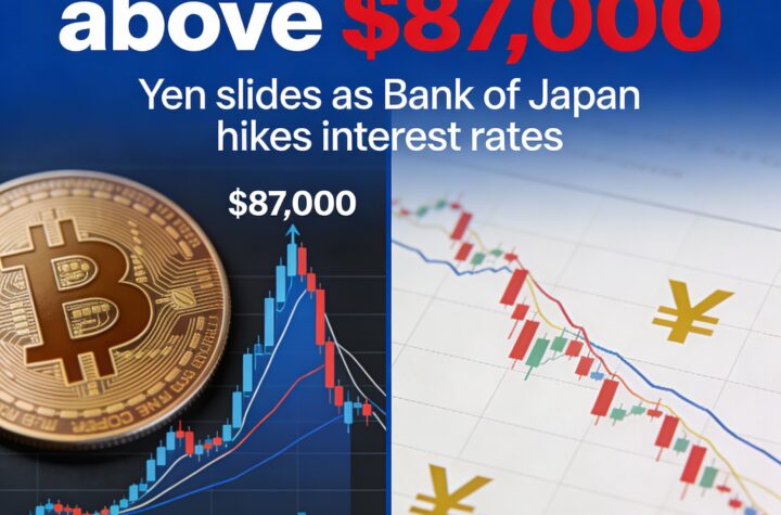Bitcoin rises above $87,000 while the yen weakens after Japan raises interest rates.