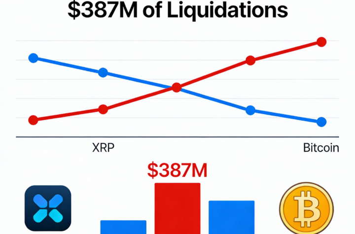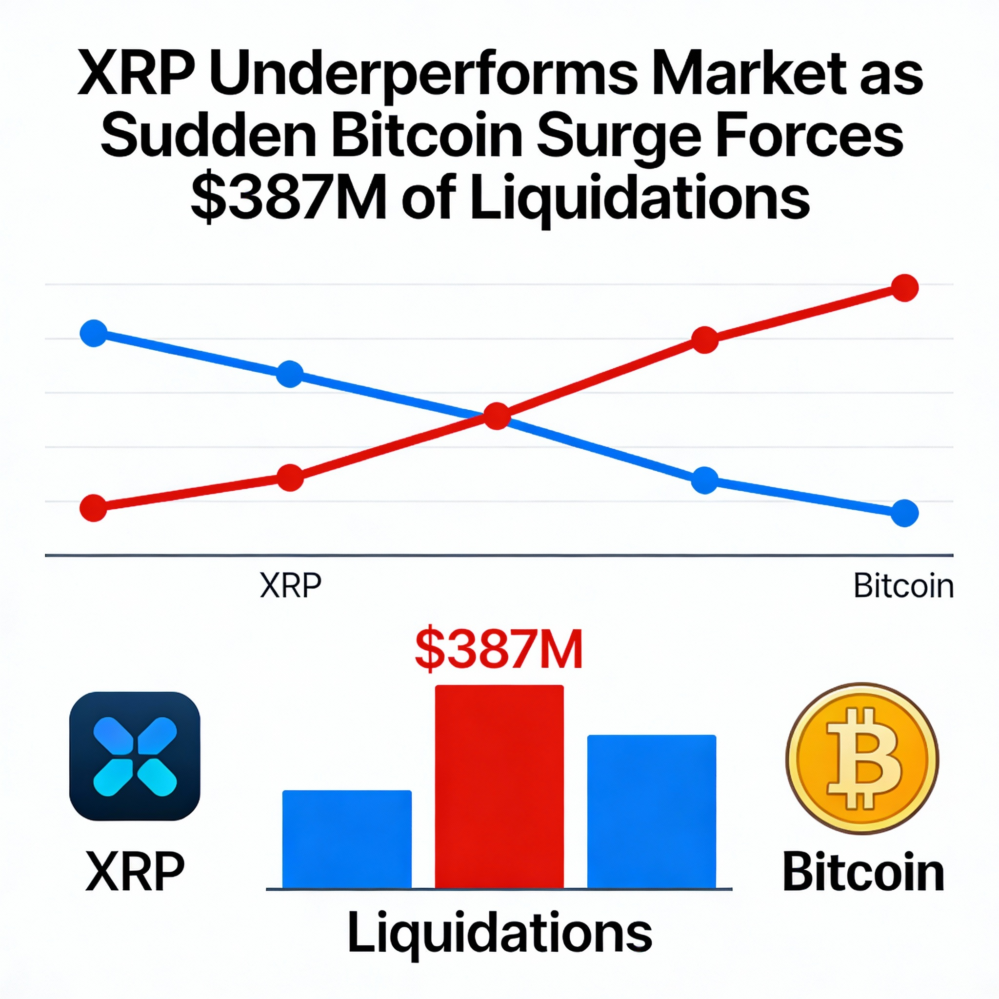 XRP Lags as Bitcoin’s Sharp Spike Sparks $387 Million Liquidations