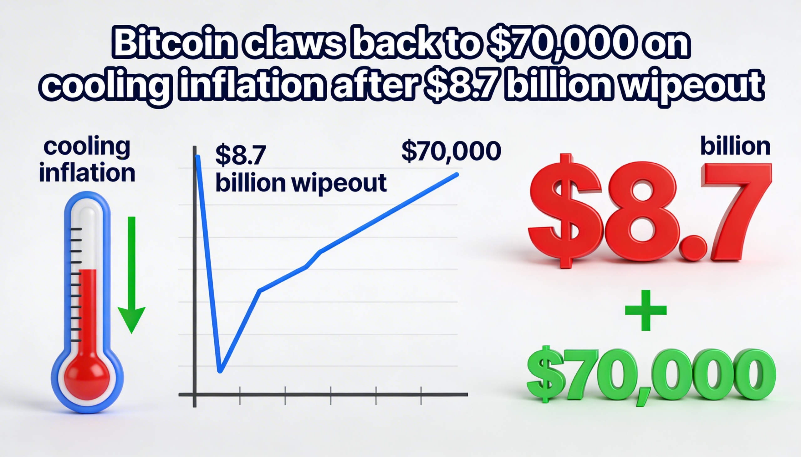 Bitcoin climbs back to the $70,000 mark after cooling inflation data and an $8.7 billion sell-off.