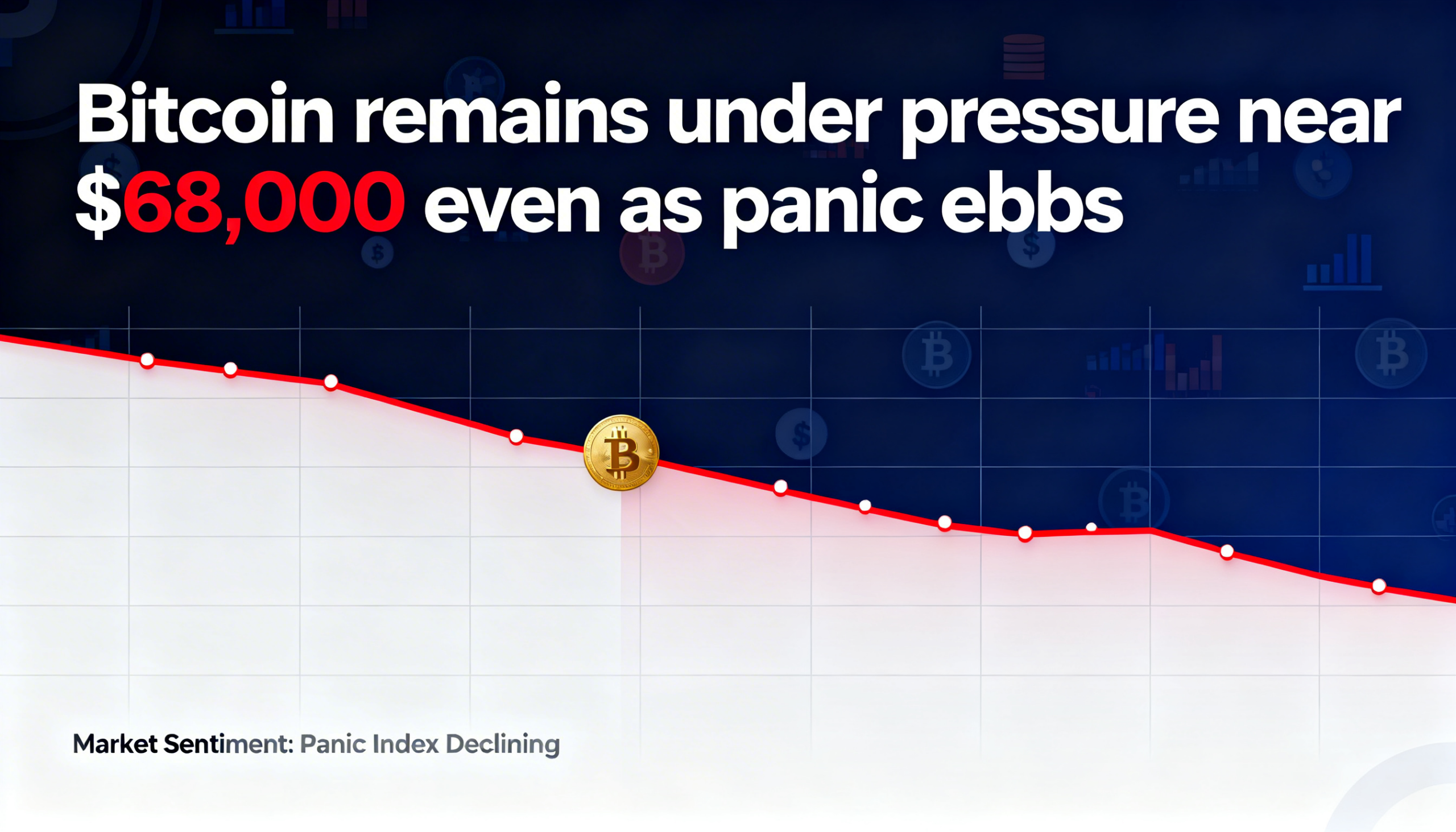 Bitcoin continues to trade under strain around $68,000 despite signs that market panic is easing.