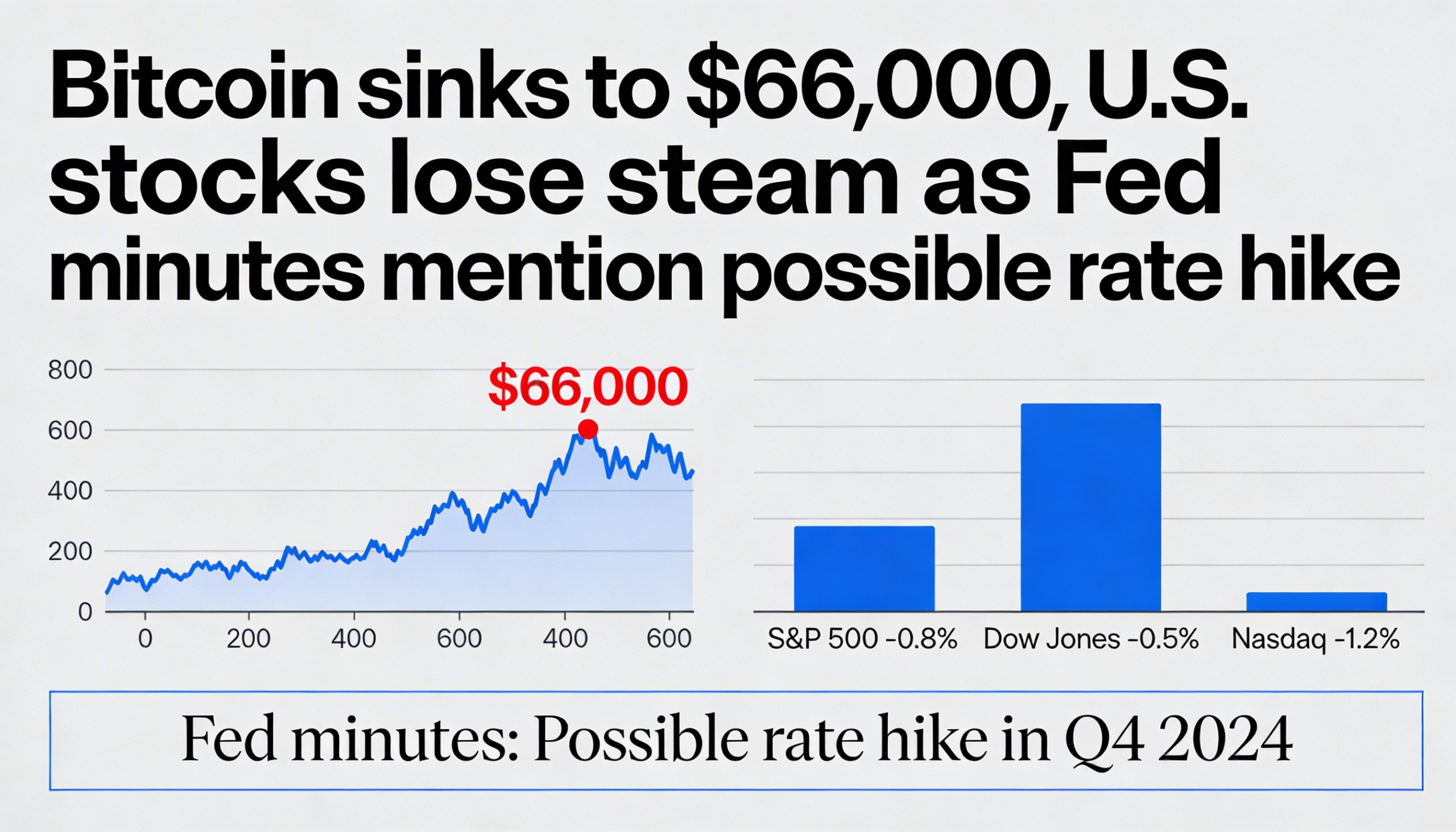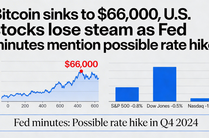 Bitcoin drops to $66,000 as U.S. equities retreat after Fed minutes flag potential rate hike.