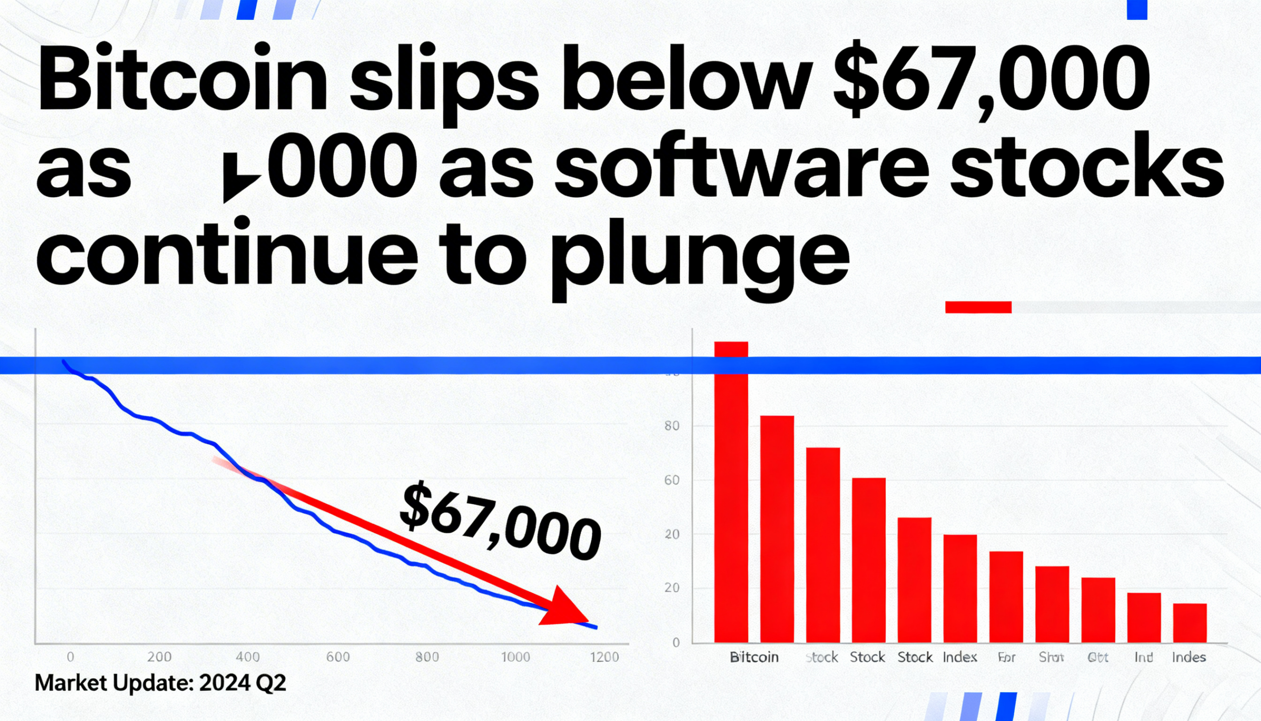 Bitcoin falls under $67,000 as software shares extend their sharp decline.