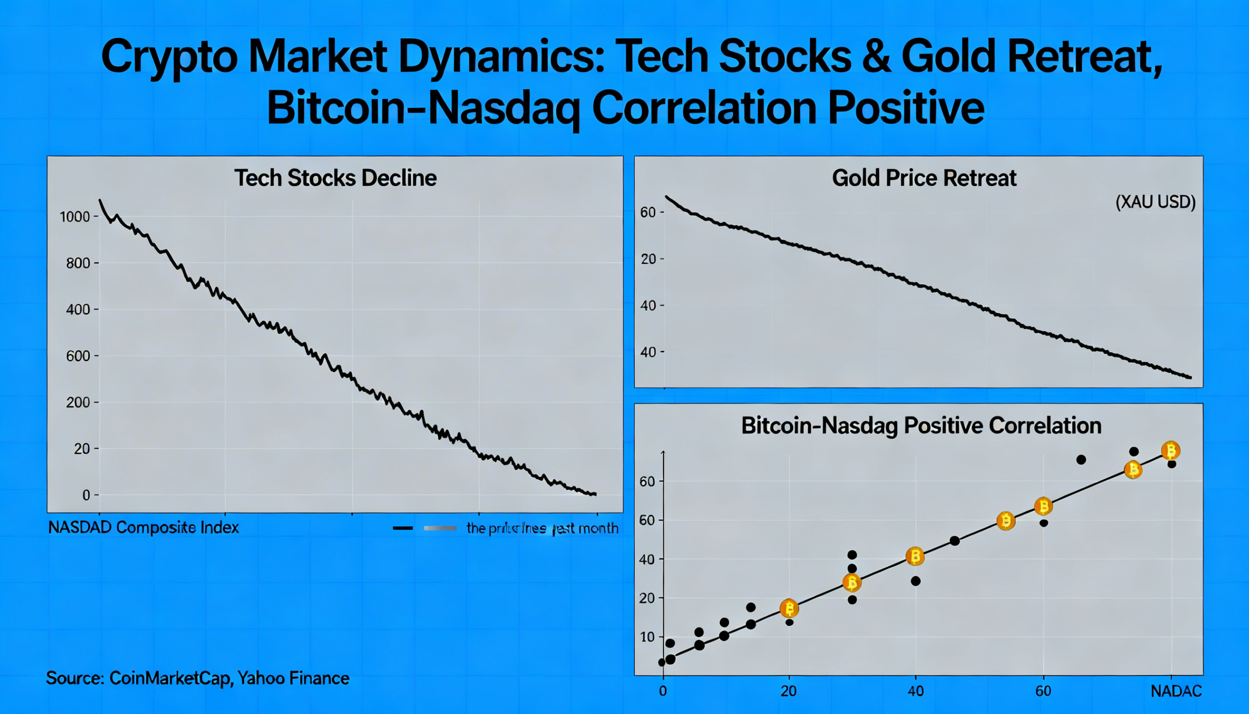 Crypto declines alongside falling tech stocks and gold, as bitcoin’s correlation with the Nasdaq flips positive