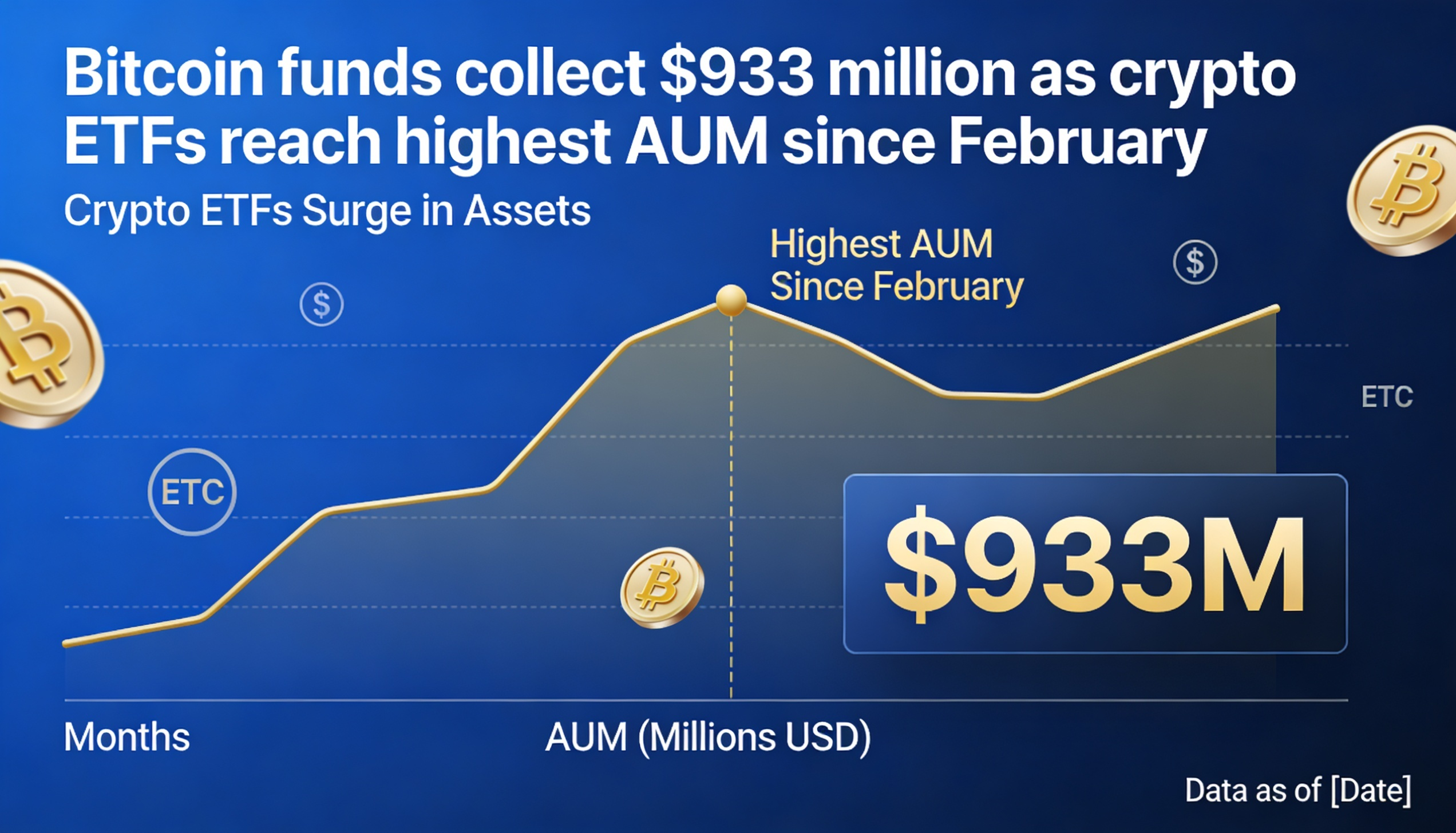 Bitcoin funds draw $933 million in inflows as crypto ETF assets under management climb to February peak levels