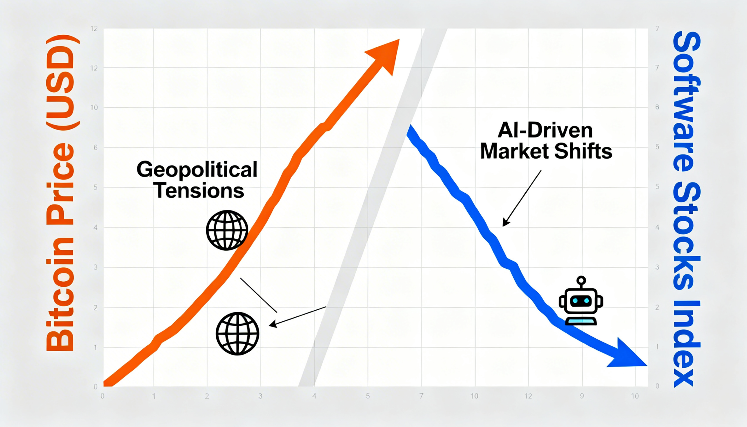 Bitcoin breaks away from tech software equities amid Iran war and AI-driven market shifts