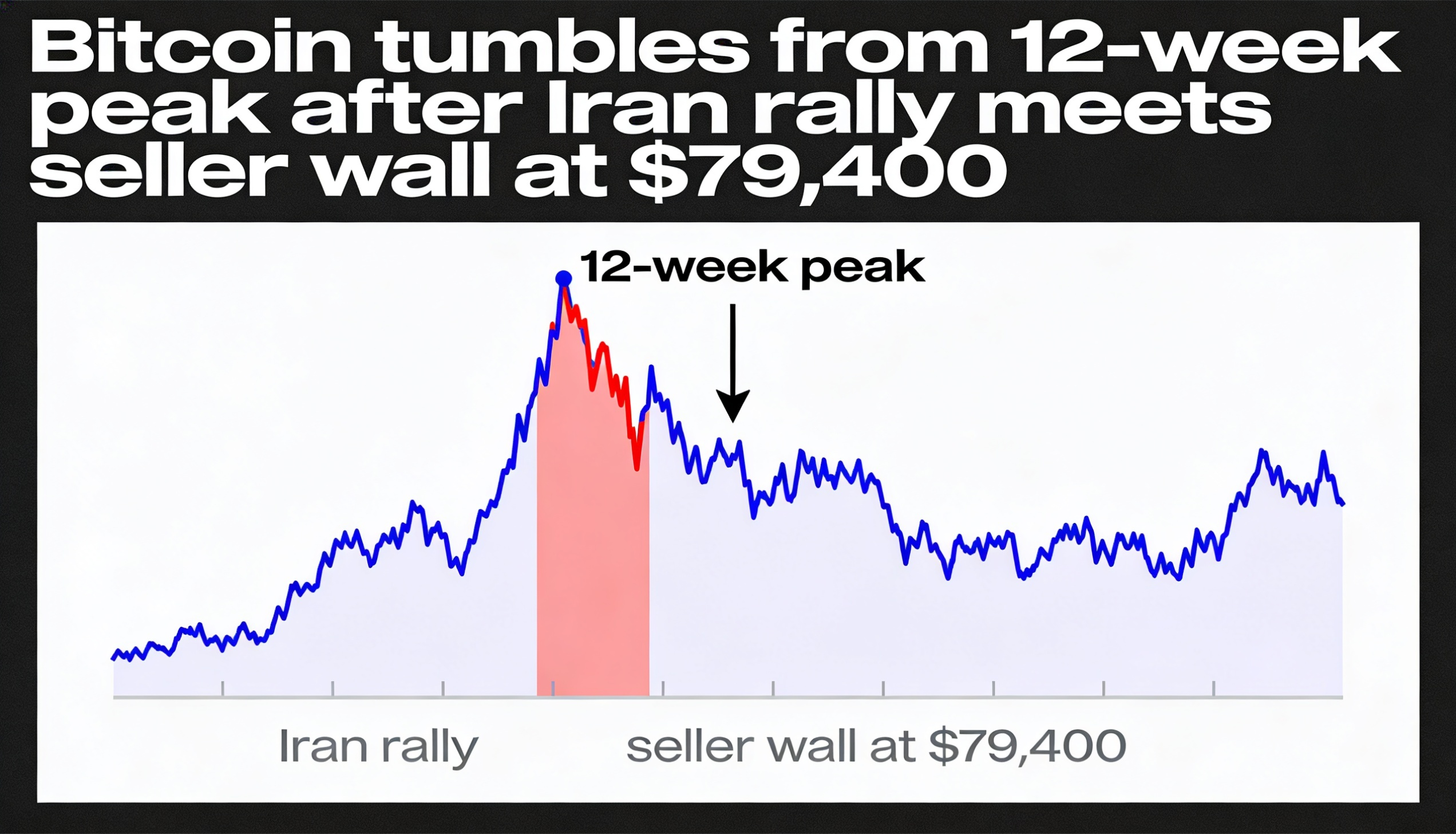 Bitcoin dips from 12-week peak as Iran rally hits a seller wall around $79,400