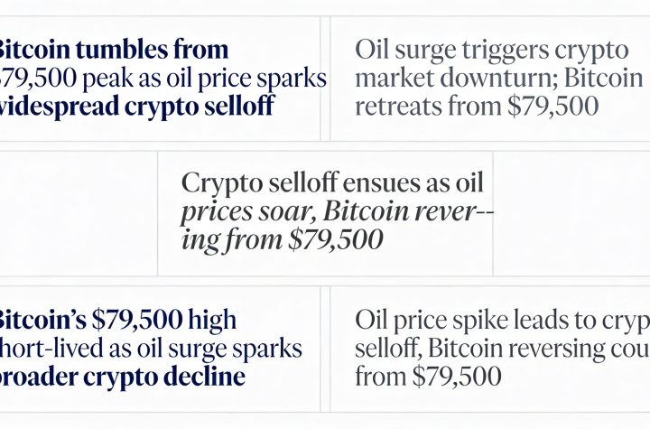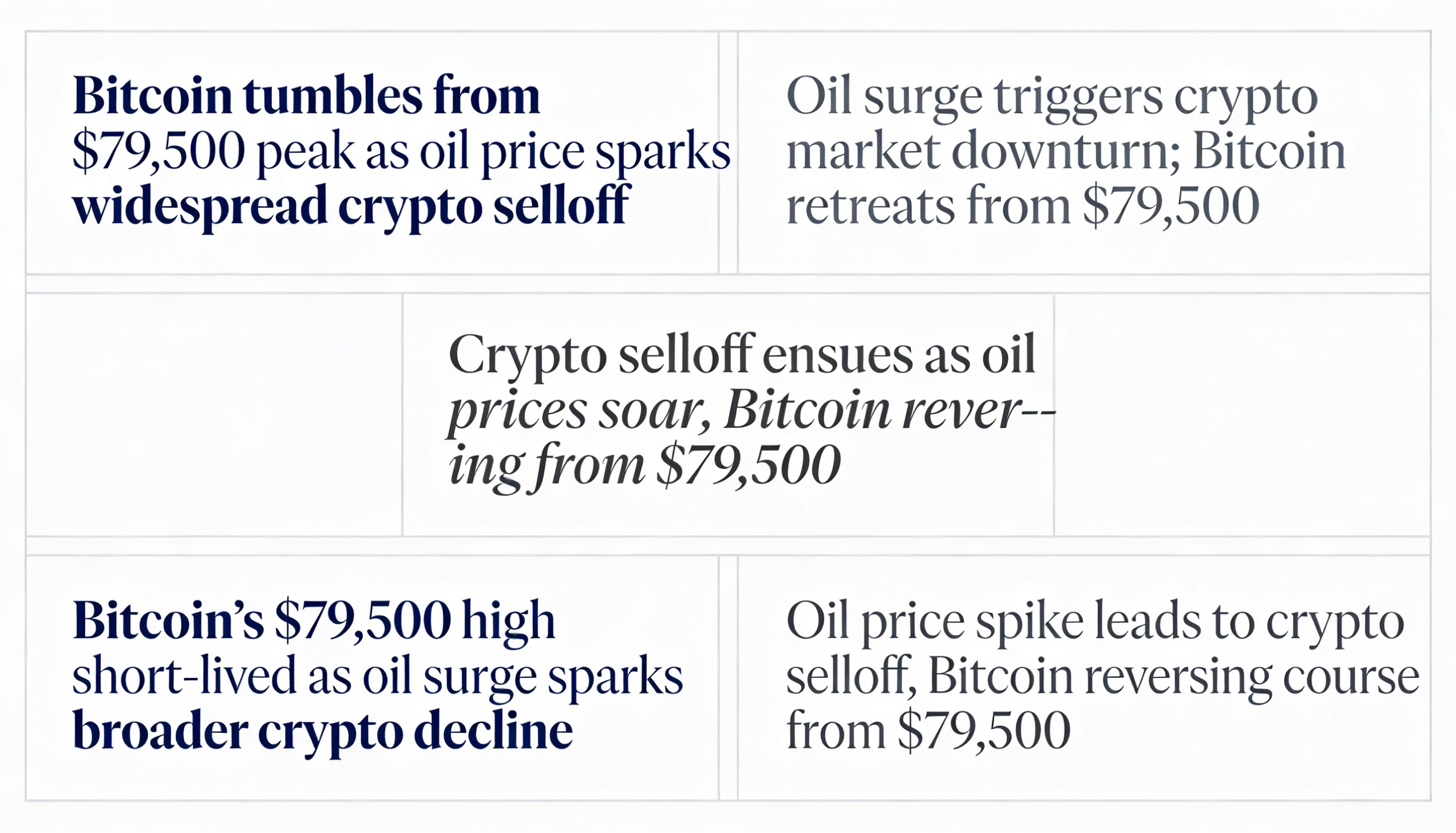 Bitcoin slips from $79,500 as oil surge triggers broad market weakness in crypto