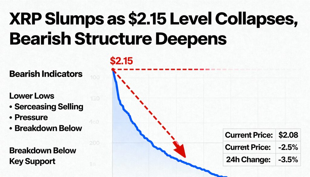 XRP Drops Below $2.15 as Selling Pressure Intensifies