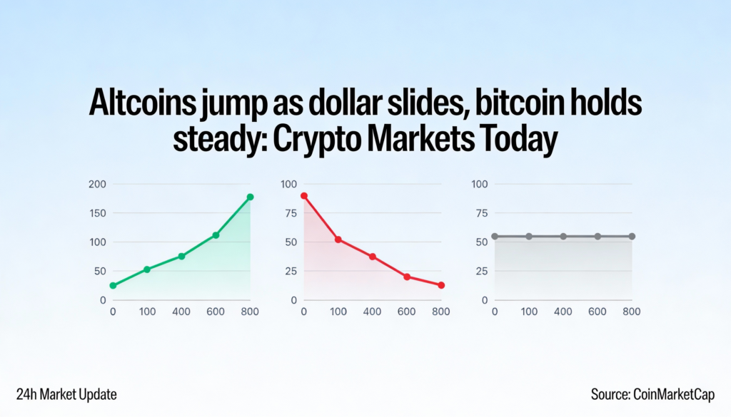 Altcoins rallied as the U.S. dollar slid to a multi-year low, while bitcoin traded sideways and ether eased modestly.