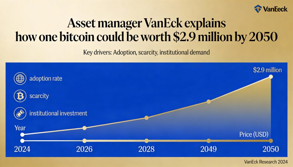 Asset manager VanEck has released a long-term framework suggesting bitcoin could be valued at roughly $2.9 million by 2050. The research, published Thursday in a blog post titled “Bitcoin Long-Term Capital Market Assumptions,” was authored by Matthew Sigel, VanEck’s head of digital assets research, and Patrick Bush, senior investment analyst for digital assets.