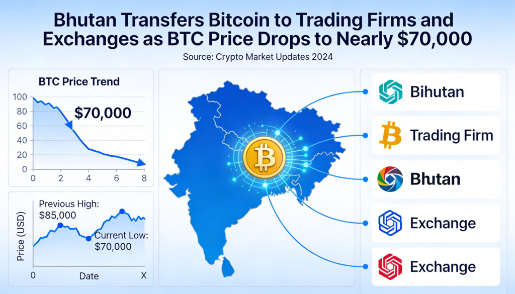 Wallet data indicates the Royal Government of Bhutan has begun moving bitcoin to trading firms and exchanges for the first time in months, as crypto markets sell off and volatility ripples across digital assets and metals.