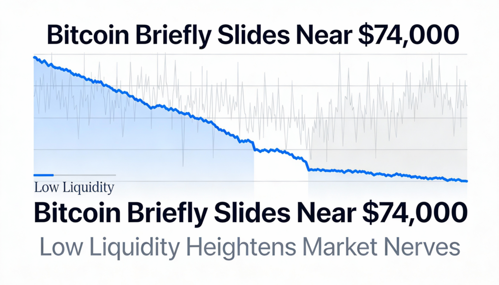 Bitcoin rebounded above $76,000 after briefly losing support and dipping to the $74,000 area, underscoring how shallow liquidity continues to amplify price swings even on modest order flow. The move came as China’s latest factory data showed only marginal improvement, offering limited macro support while a firm dollar and thin exchange depth capped upside.