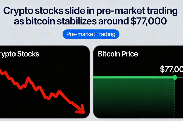 Crypto-linked stocks fall in premarket trading as Bitcoin hovers near $77,000.