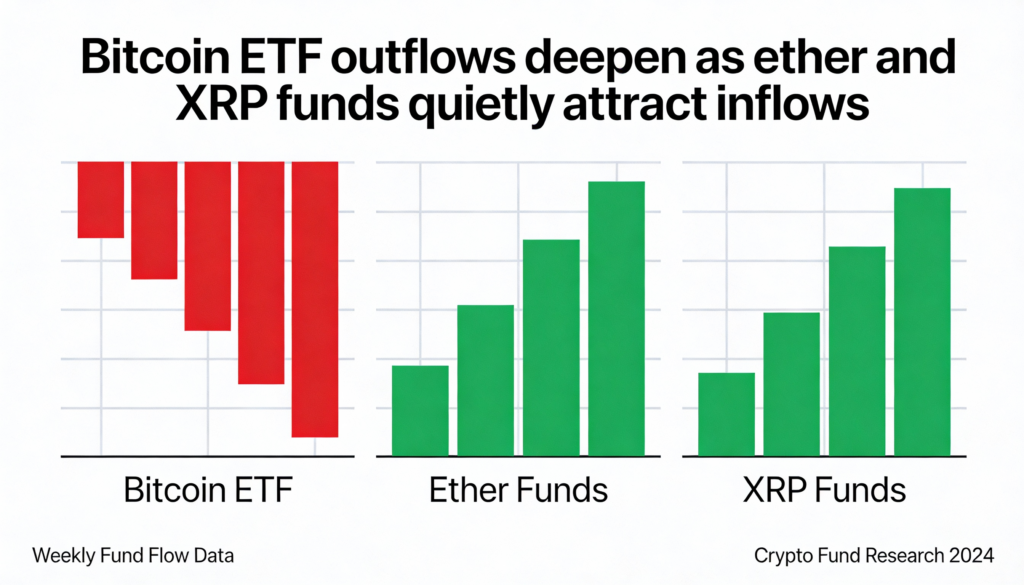 By contrast, spot ether ETFs recorded roughly $14 million in net inflows, while XRP-focused products drew close to $20 million, signaling that some investors are rotating exposure rather than exiting the crypto market altogether.