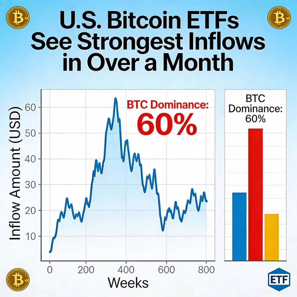 Bitcoin dominance — the cryptocurrency’s share of total market capitalization — rose to 60%, the highest since November 14 when BTC was trading near $100,000. Currently, bitcoin is trading around $87,000.