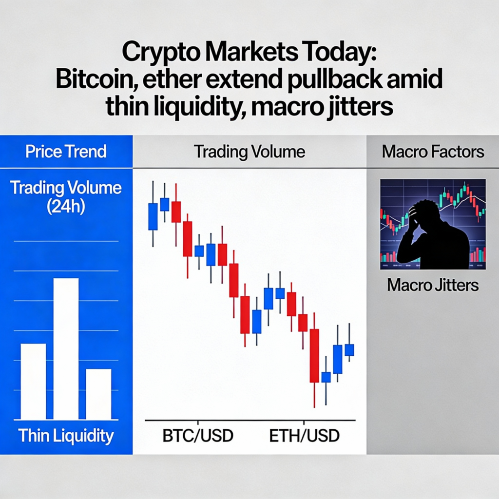 Bitcoin (BTC$88,535.99) dropped roughly 4% to $86,100, and ether fell back below $3,000 after a 6.7% slump in 24 hours. The sell-off pushed the CoinDesk 20 Index down 4.3%, with every constituent token in the red. Traditional markets also slid: the Nasdaq Composite lost 2.6% for a second consecutive day amid concerns about a potential AI bubble and ahead of Tuesday’s U.S. labor data, including November’s nonfarm payrolls.