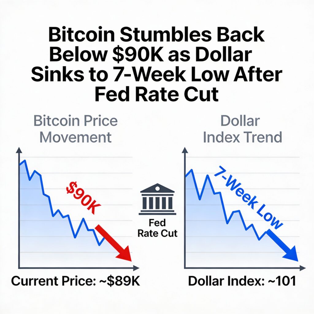 Crypto markets have failed to sustain early gains. Bitcoin briefly jumped above $94,000 in the moments following the Fed decision but has since reversed lower, sliding to around $89,400 and marking a 3% decline over the past 24 hours. Ether is down roughly 5.5%, while XRP and Solana are each off close to 4%.