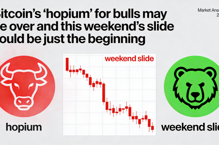 The weekend drop suggests Bitcoin’s optimism for bulls—its ‘hopium’—might be fading fast.