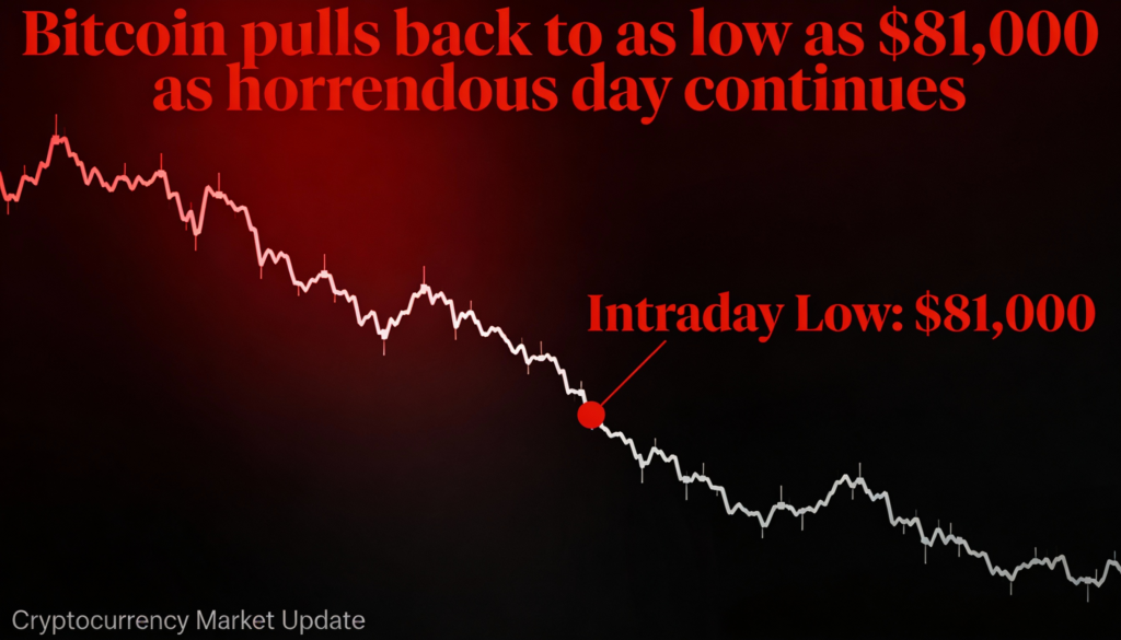Bitcoin extended its selloff late Thursday in U.S. trading, briefly sliding to $81,000 before paring losses to trade near $82,000.