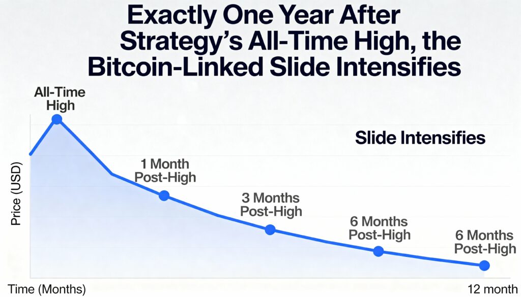 Exactly one year ago, Strategy reached an all-time high, riding a surge in Bitcoin, which was approaching $100,000. At the time, the company had established itself as a pioneer in holding bitcoin (BTC $87,033.52) as a corporate treasury asset.