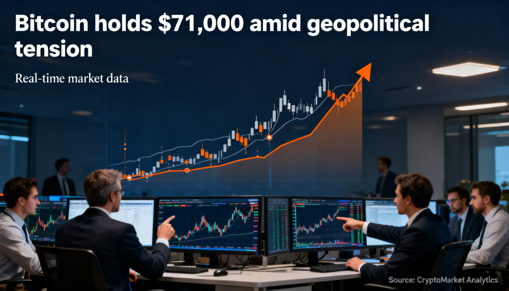 Bitcoin is holding near $71,000 despite escalating tensions in the Middle East, remaining firmly higher on the week as markets shift attention to the upcoming Federal Reserve meeting on March 17–18.