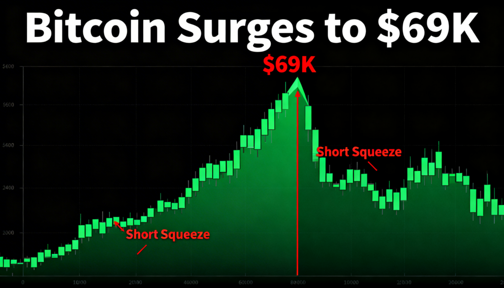 Bitcoin traded within a $2,700 range over the past 24 hours, fluctuating between $66,634 and $69,350—volatility that intensified the squeeze on short sellers.
