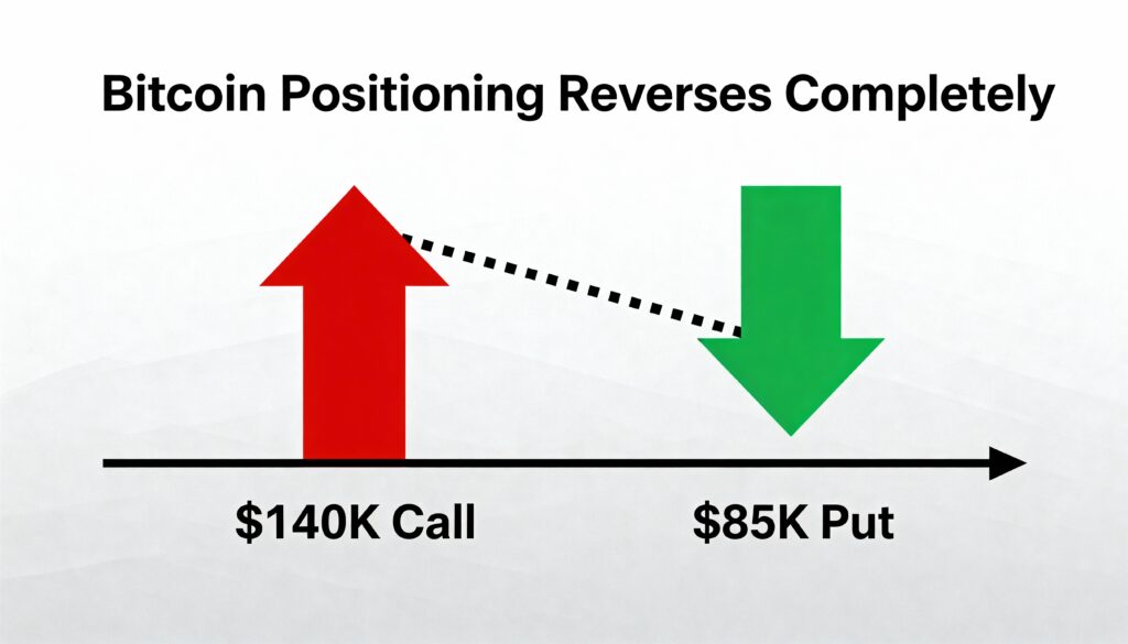 Bitcoin’s options market has flipped dramatically, moving from last year’s ultra-bullish positioning to a notably bearish stance as the cryptocurrency tumbles more than 25% from early October levels to around $91,000.