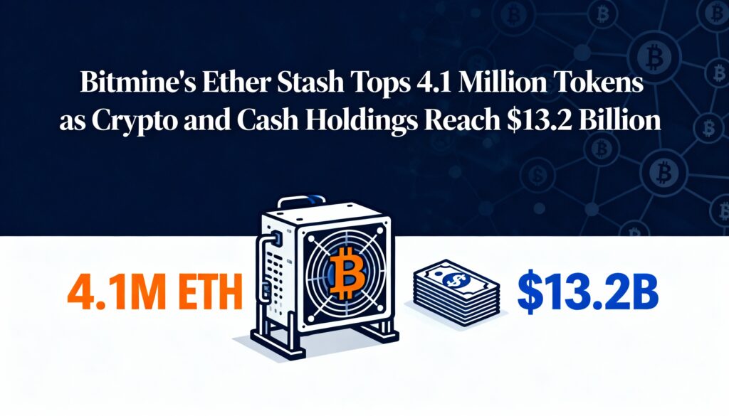Bitmine’s ETH Holdings Surpass 4.1 Million Tokens, Total Assets at $13.2 Billion