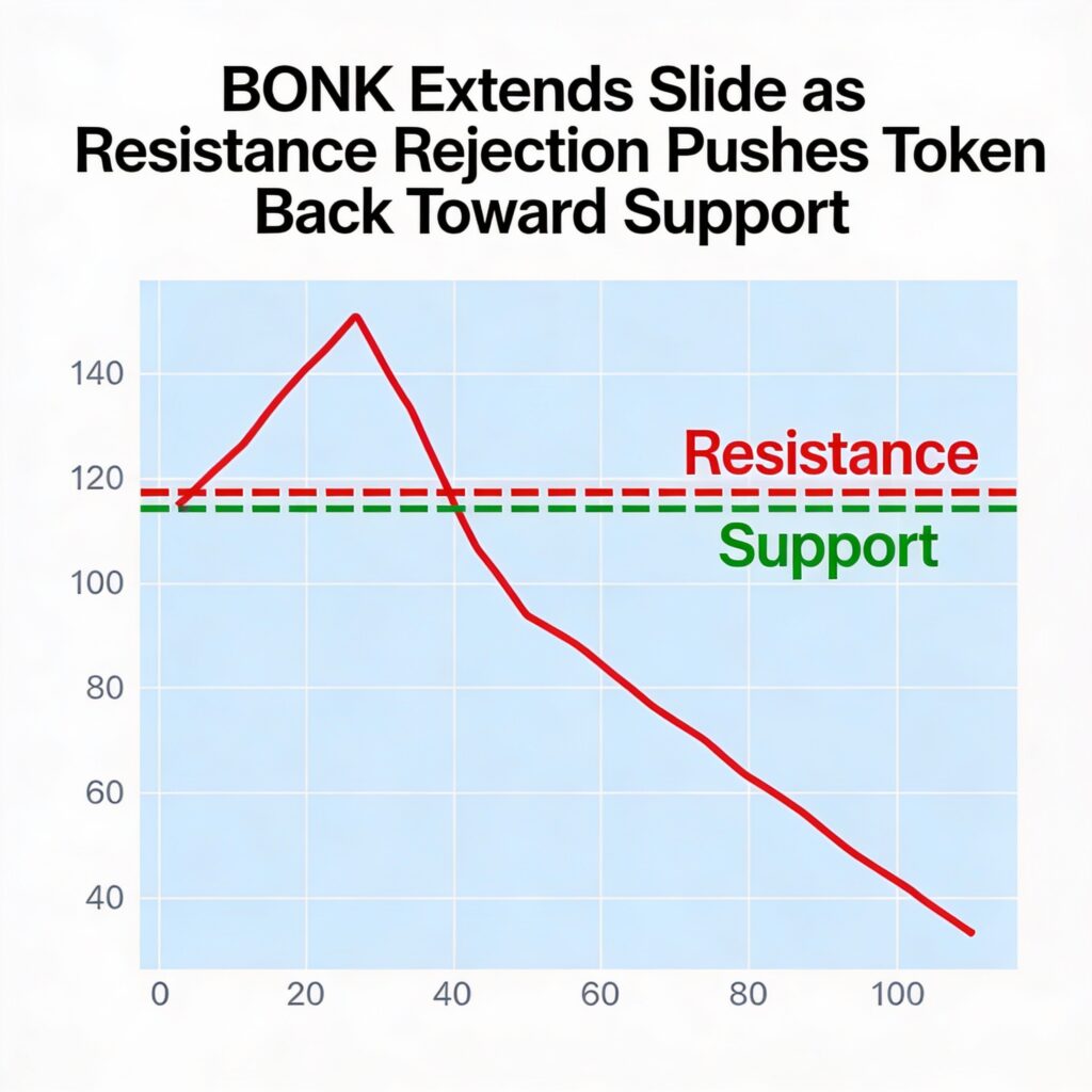 BONK fell 4.5% over the past 24 hours after an early rally stalled near the $0.00001010 resistance zone, sending the token back into consolidation around $0.00000910.