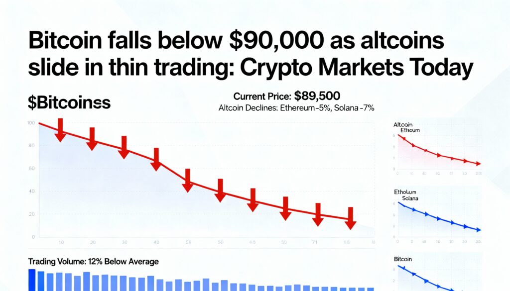 BTC fell below $90,000, dropping from a local high of $91,570 at 01:15 UTC to trade at $91,536, its lowest level in five days. This marks the third failed attempt to surpass $94,500, following similar rejections on Dec. 4 and Dec. 10, reflecting price behavior largely unchanged over the past six weeks. Bitcoin’s current range sits between $85,000 and $94,500, providing relative stability after October’s selloff from a record high of $126,220 on Oct. 6 to $80,600 by Nov. 21.