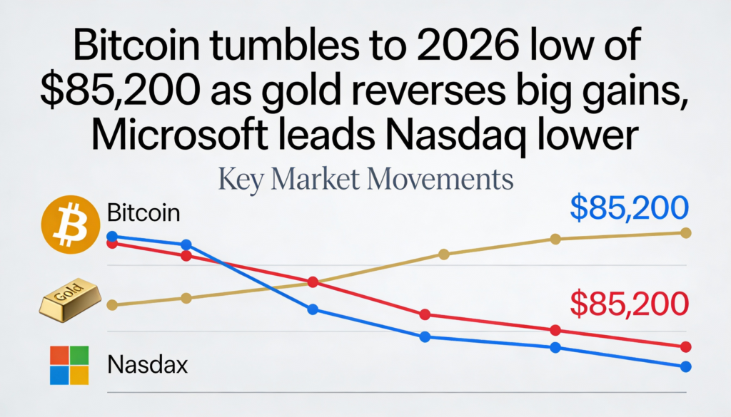Gold Collapses After Rally, Bitcoin Slides to One-Month Low as Tech Stocks Falter