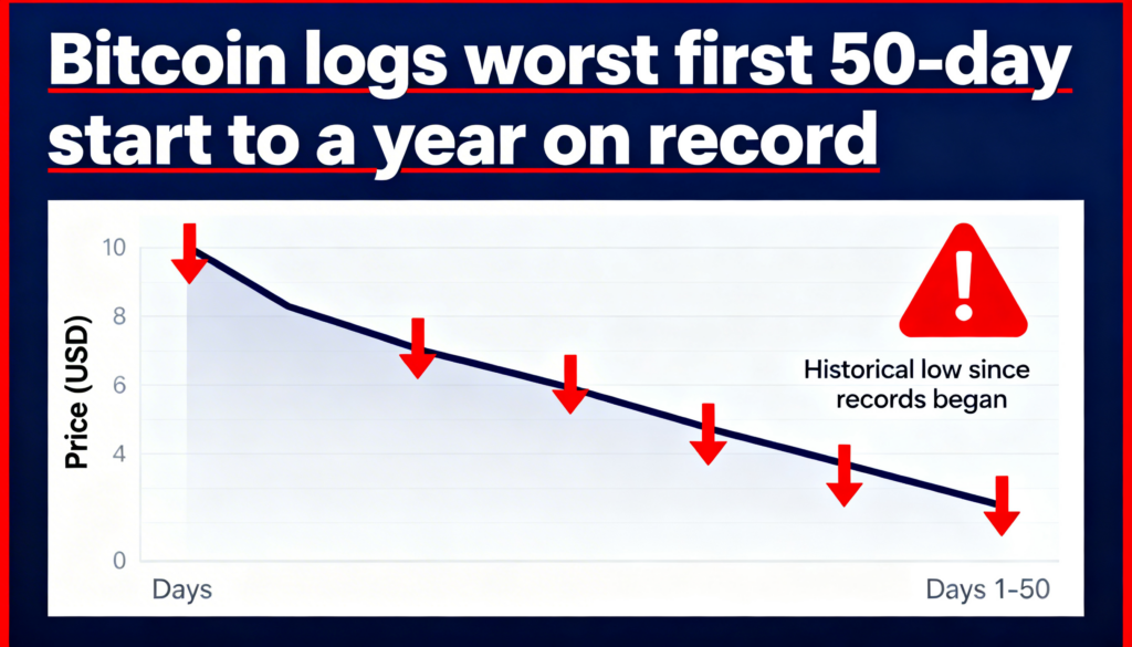 Bitcoin is heading toward an unprecedented pattern of consecutive losses in January and February, marking one of the weakest openings to a year in its history.