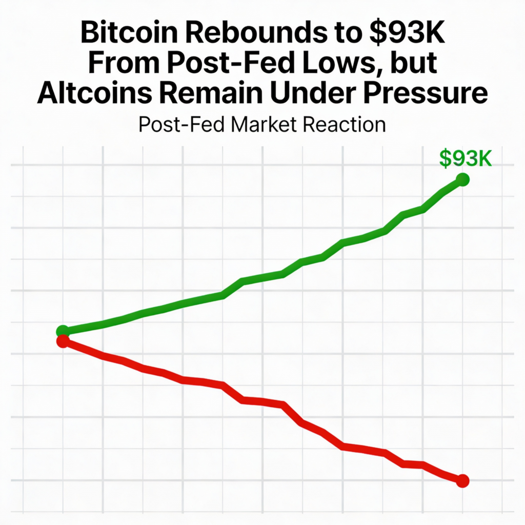 Bitcoin (BTC) rebounded to $93,000 on Thursday after hitting $89,000 following the Federal Reserve’s Wednesday rate cut and a weak U.S. stock open. While selling pressure appears to be easing, analysts caution that the market is not yet fully stabilized.