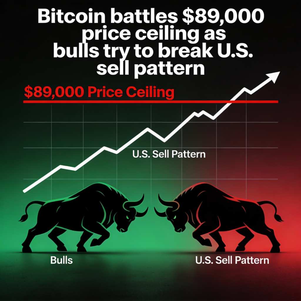 Bitcoin (BTC $89,961.91) is battling a recurring pattern of sell pressure during U.S. trading hours. After dipping below $85,000 late Thursday, BTC rebounded once U.S. markets closed, climbing back above $89,000 by Friday morning. Still, the $89,000–$90,000 range has consistently acted as a ceiling this week, with sellers quickly pushing prices lower.