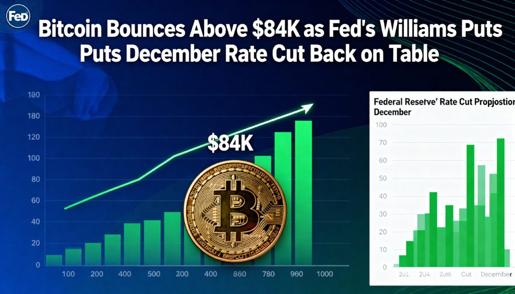 Bitcoin (BTC $87,557.18) rebounded modestly Friday morning in U.S. trading following a 10% overnight sell-off, as dovish remarks from New York Fed President John Williams boosted expectations for a Federal Reserve rate cut in December.