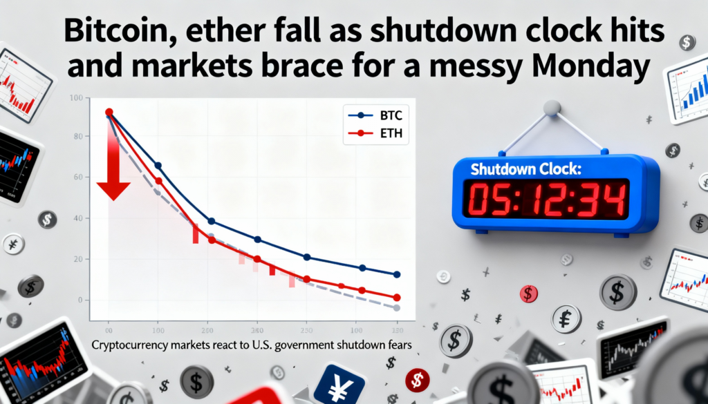 Cryptocurrencies slide ahead of Monday, as the federal shutdown clock ticks down.