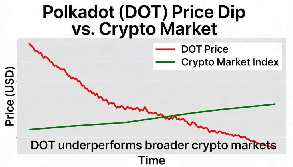 The decline occurred without clear fundamental drivers, as technical factors largely shaped price movements. DOT lagged the broader crypto market, while the CoinDesk 20 index fell 0.6% during the same period. Analysts suggest this divergence reflects sector rotation rather than any structural weakness in Polkadot.