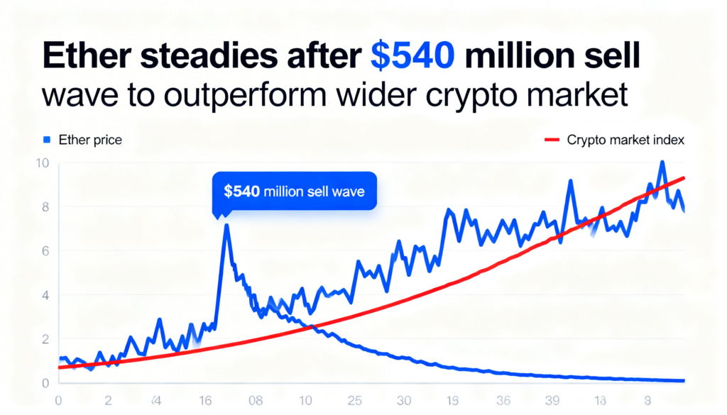 Following a $540 million liquidation wave, ether finds footing and beats the wider crypto market.