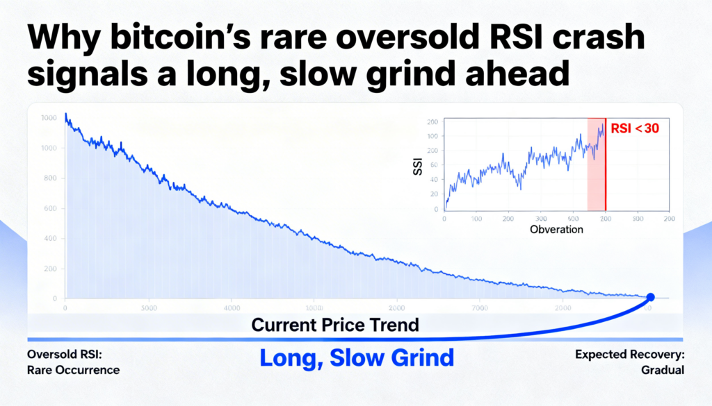 Past instances of RSI dipping under 30 have aligned with major cycle lows. In January 2015, the RSI slid to roughly 28 as bitcoin traded near $200. That move was followed by about eight months of sideways accumulation before a durable uptrend emerged. A similar scenario played out in December 2018, when the RSI dropped below 30 around the $3,500 mark, preceding roughly three months of consolidation before prices broke higher.