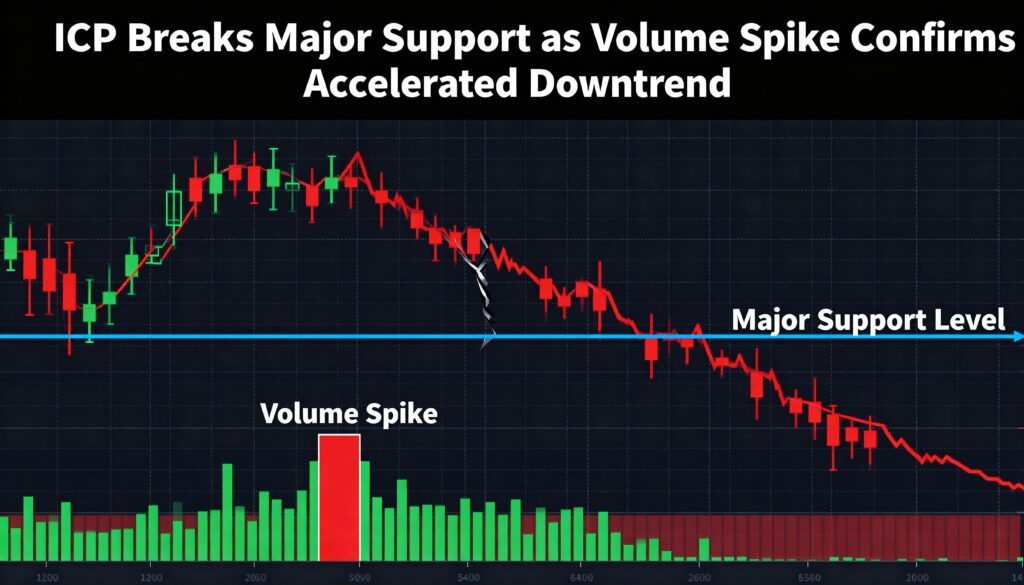 ICP Slides Below Critical Support as Volume Surge Accelerates Sell-Off