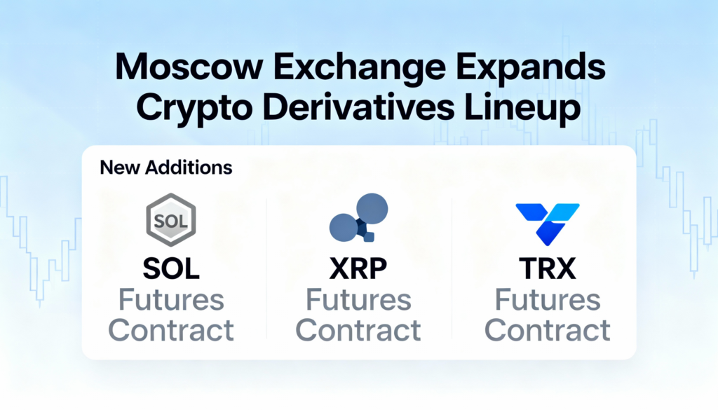 The Moscow Exchange plans to expand its crypto derivatives offering with new cash-settled futures contracts tied to Solana (SOL), XRP, and TRX, according to exchange officials.