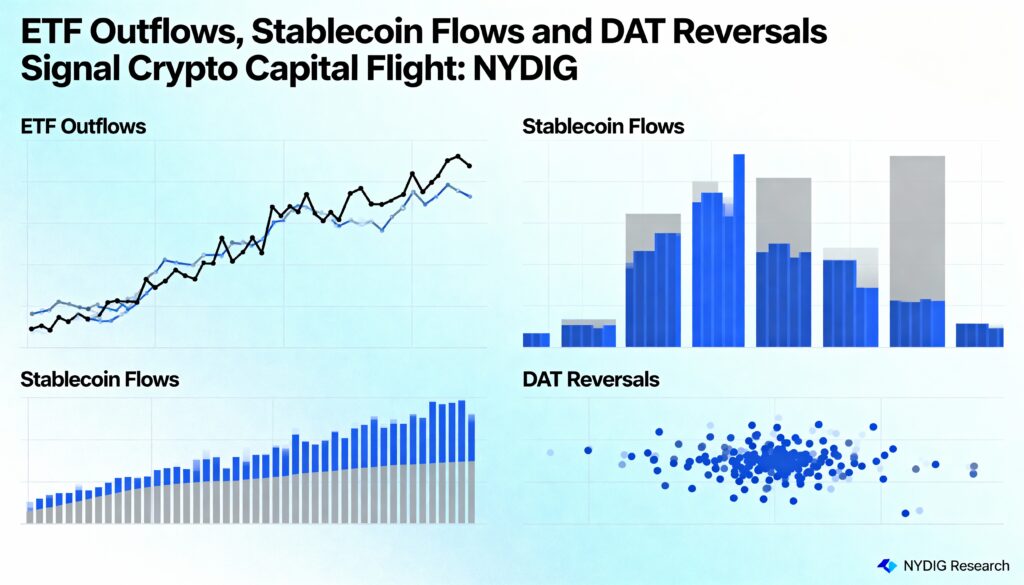 NYDIG: ETF Outflows, Stablecoins, and DAT Reversals Signal Crypto Capital Flight