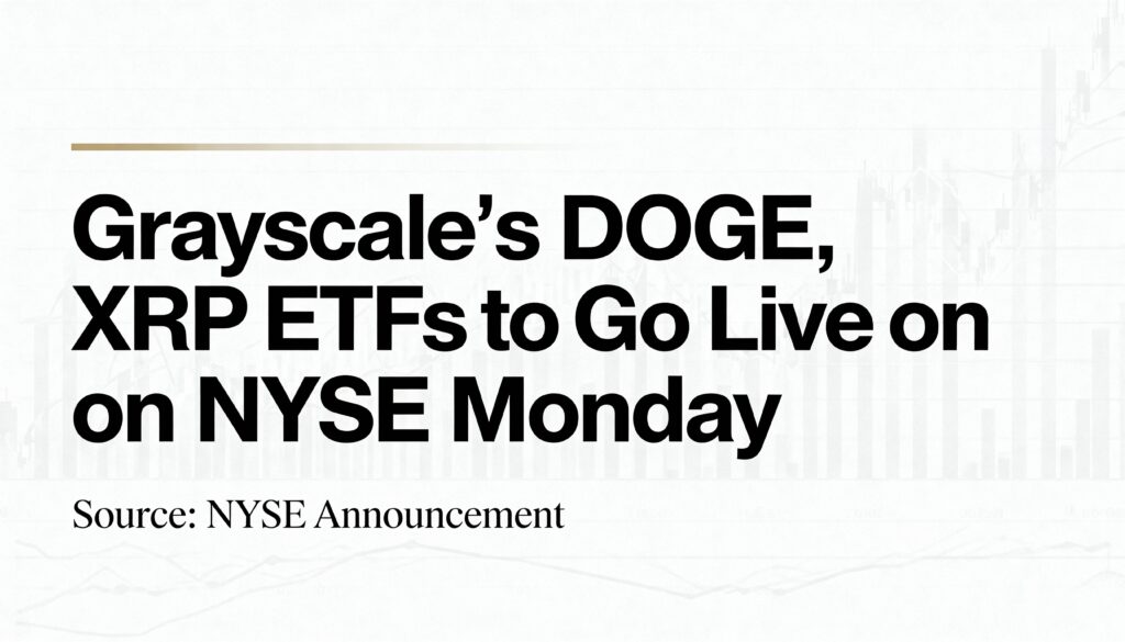 Grayscale is launching two new crypto exchange-traded funds (ETFs) on NYSE Arca this Monday, giving U.S. investors regulated, easy access to Dogecoin (DOGE) and XRP for the first time in public markets.