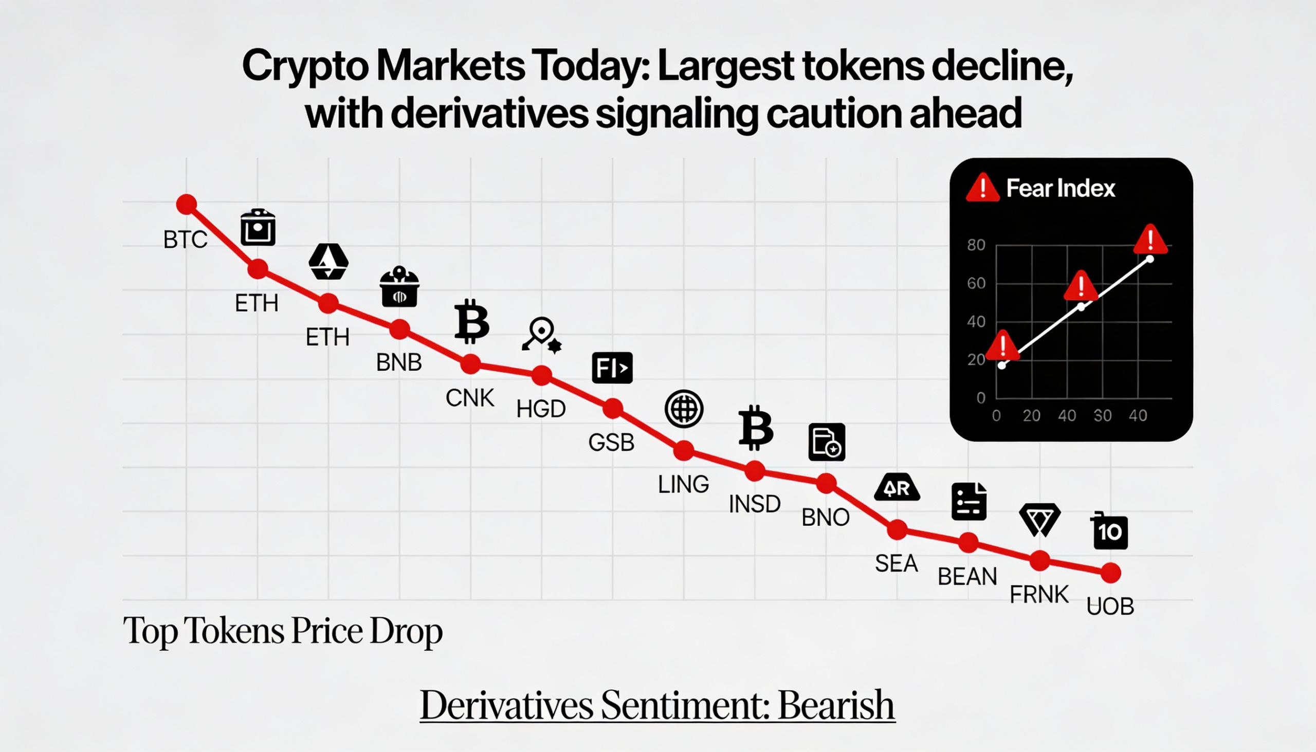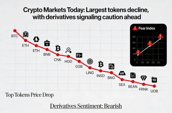 Crypto Today: Top digital assets fall while derivatives point to a cautious mood