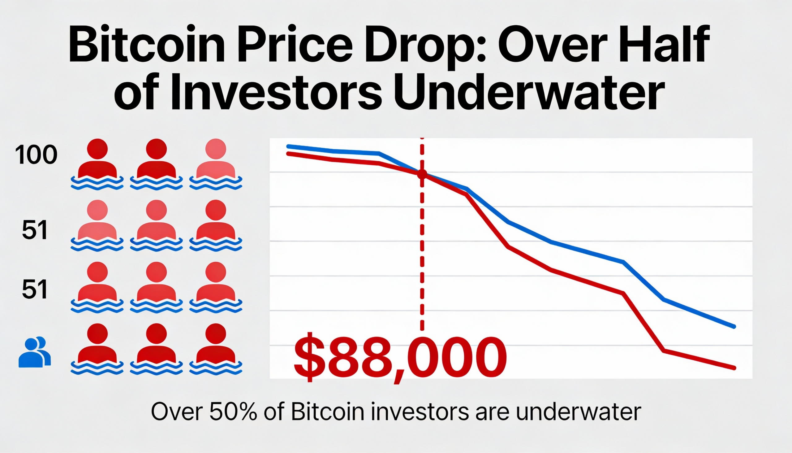 More than half of BTC holders are underwater after prices slipped below $88,000