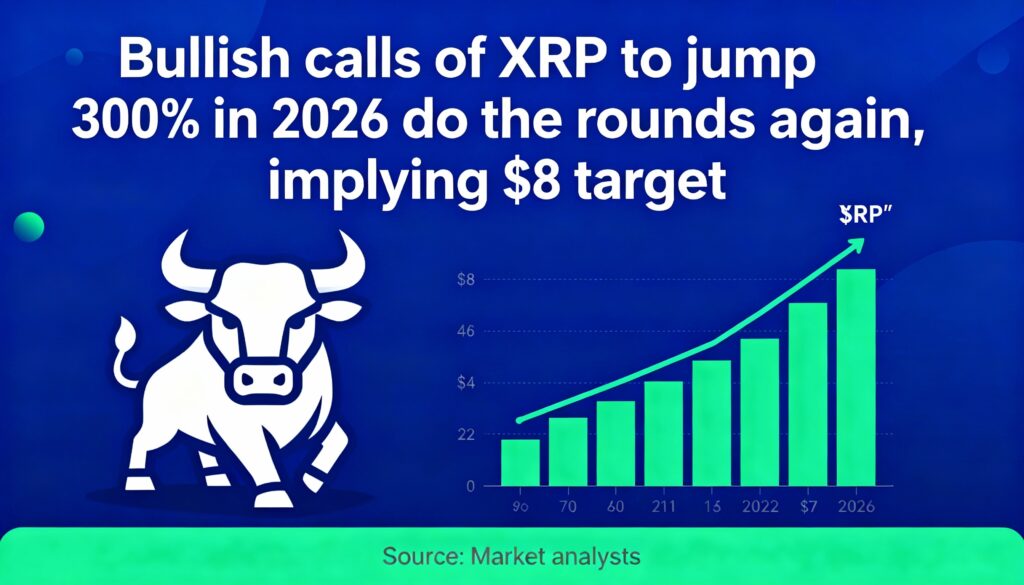 Predictions of a 300% XRP surge in 2026 are back in circulation, implying an $8 upside target.
