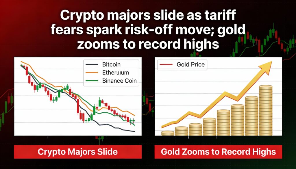 Tariff concerns drag crypto lower while gold surges to fresh records.