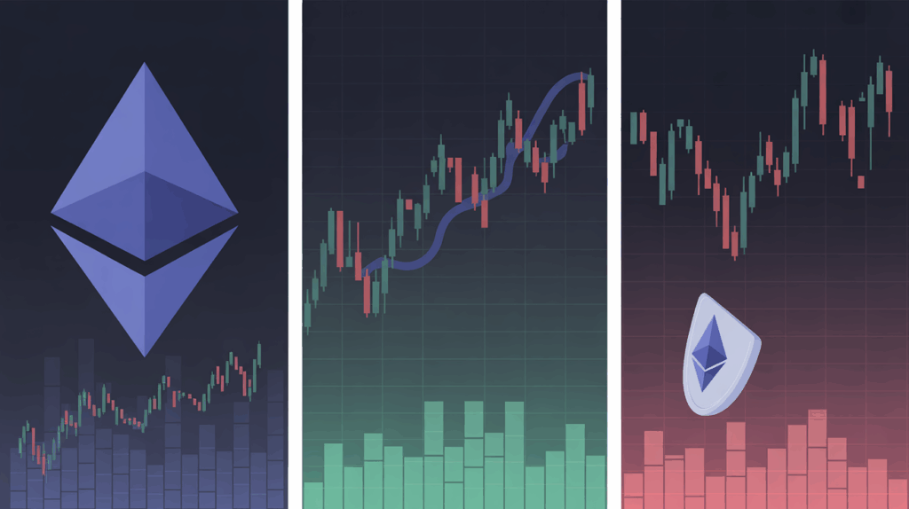 Ether’s dollar price mirrors the ratio’s structure, trading within its own downward channel. Recent daily candles show long lower wicks near the $3,000 level—evidence of buyers absorbing selling pressure and early signs of exhaustion among bears.