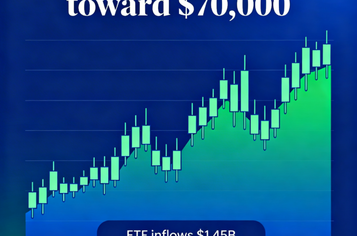 Bitcoin rebounds near $70,000 with $1.45B flowing into ETFs in the past five sessions.